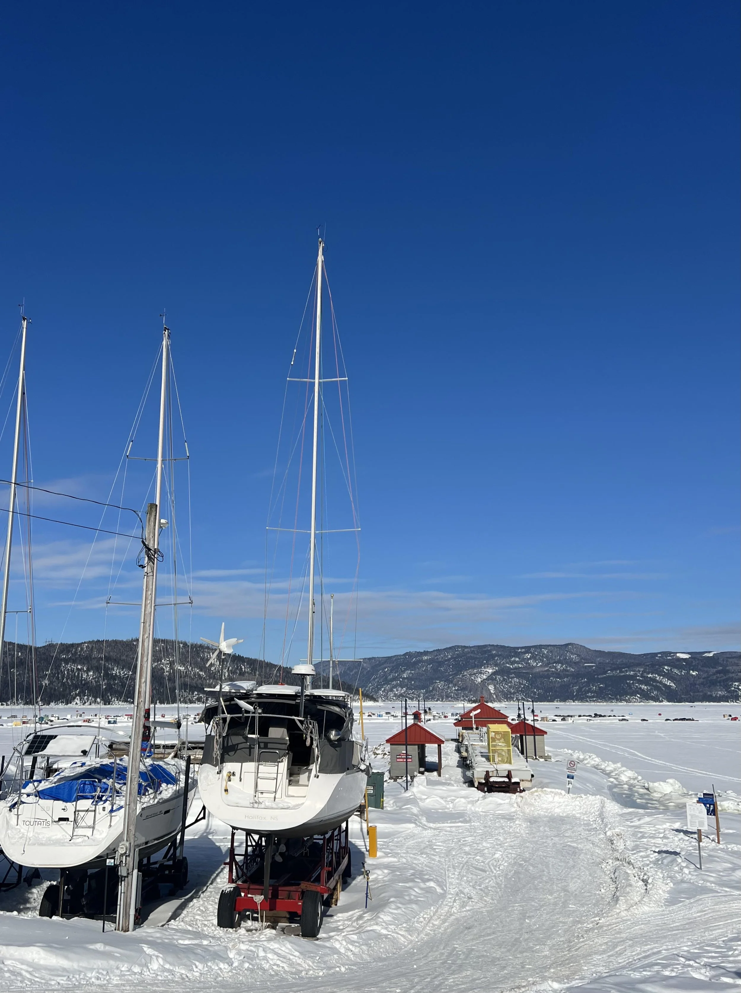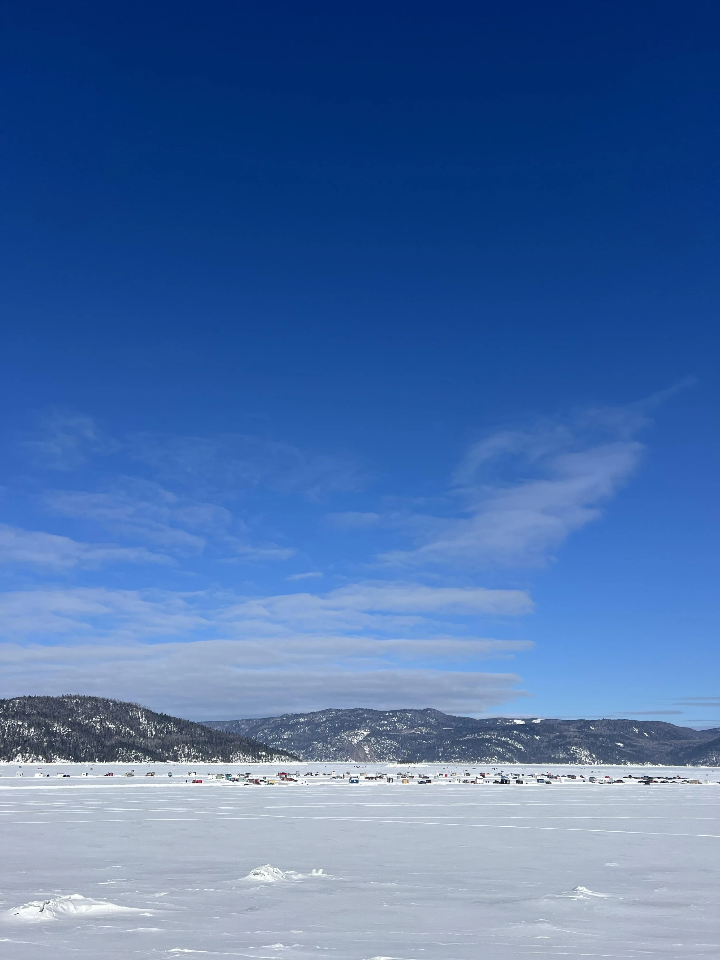 En ce moment, je suis installée dans un petit café à l’Anse-Saint-Jean et j’avais envie de renouer avec l’écriture de mon infolettre. Ces derniers jours, j’ai eu la chance de contempler les magnifiques couchers de soleil au Lac Saint-Jean, puis skier sur les montagnes du Mont Édouard, près du fjord. Marcher sur le fjord et observer les cabanes à pêche figées dans le blanc de l’hiver, c’est profondément inspirant. J’aime bien profiter des paysages enneigés du Québec pour apaiser ma tête remplie de couleurs. Et vous, quelles activités vous permettent de savourer pleinement l’hiver?